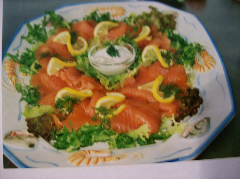 Lachs mit Senf - Dillsoße , Forellenfilet mit Apfelmeerrettich ,