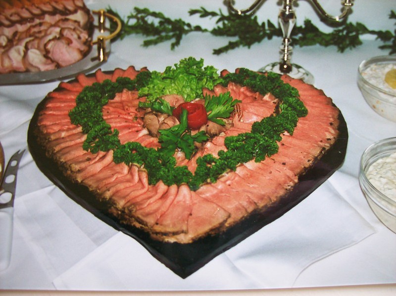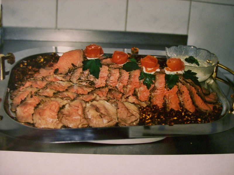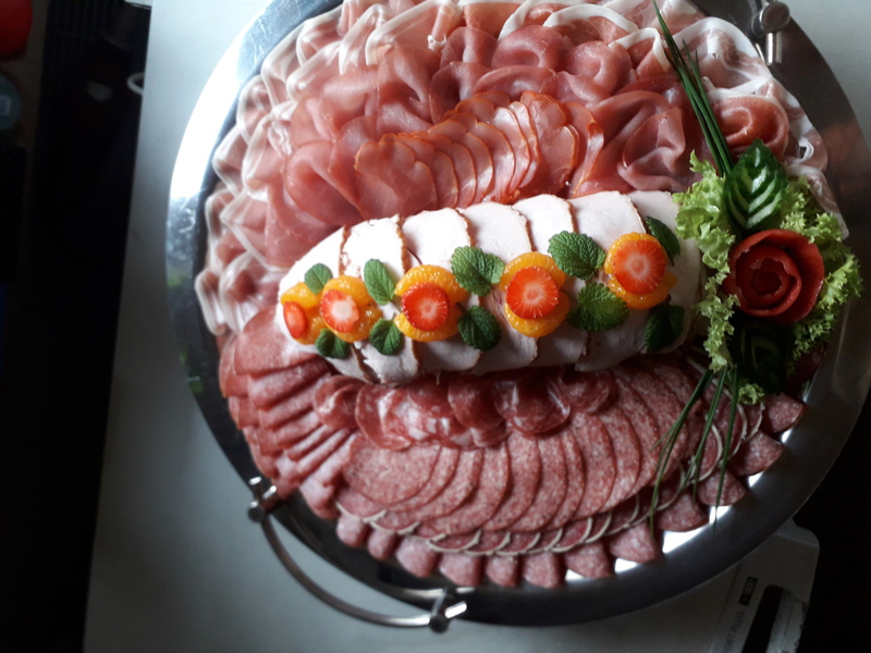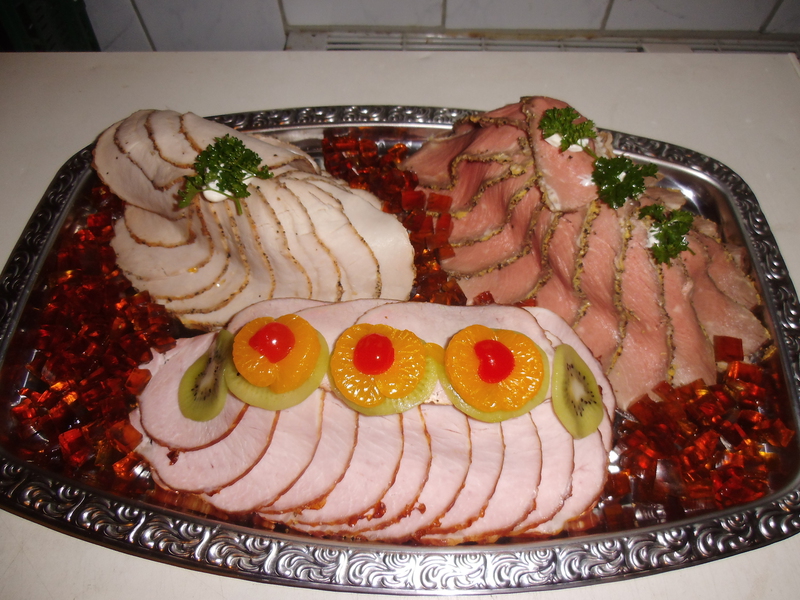 kleine Schnitzel vom Schwein und Pute , kalte Braten vom Kasseler und ofengebackene Putenbrust eingelegte Bratheringe und Matjesvariationen