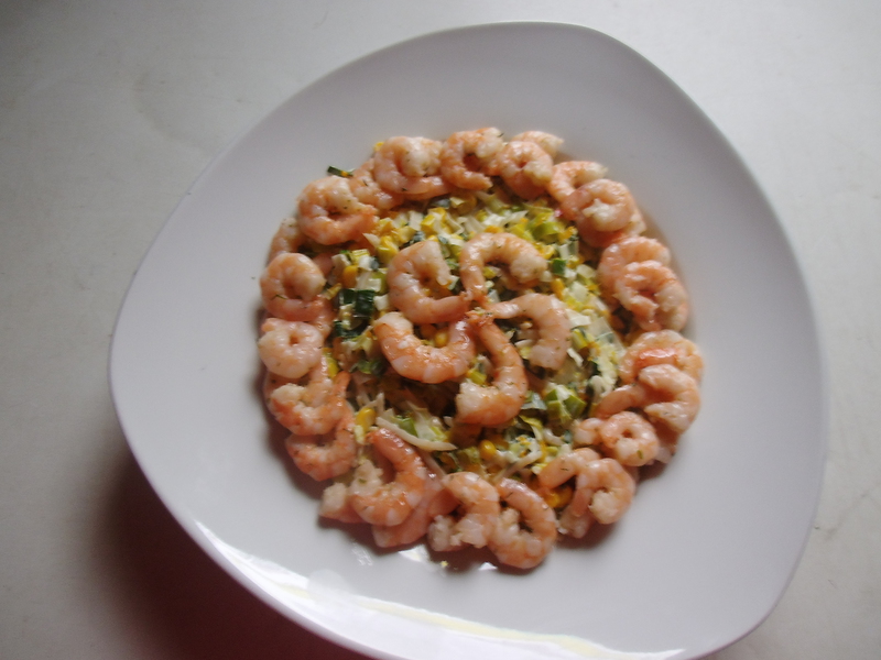 Hackfleischlasagne , Garnelen in Olivenöl mit Knoblauch , Tagliatelle ,