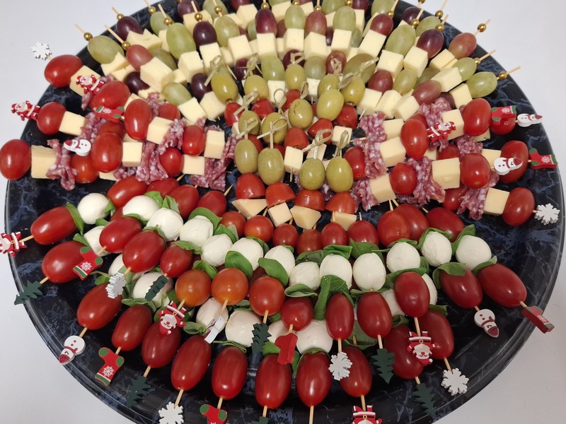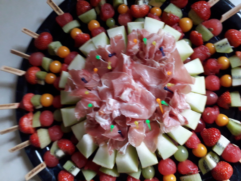 Kirschtomaten mit Mozzarella , Melonenschiffchen mit Schinken ,
