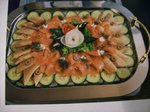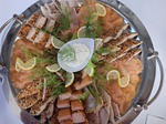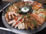 Fischplatte mit Forellenfilet , Lachs , Pfeffermakrele und Stremellachs ,
