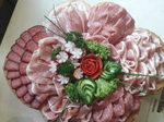 Aufschnittplatte mit geräuchertem Schinken , Salami und